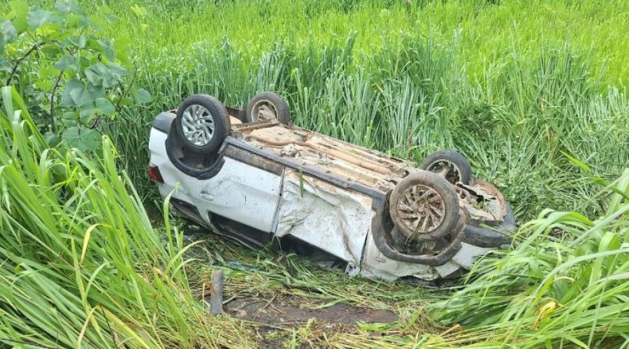 Carro da Secretaria de Saúde de Amarante capota após aquaplanar na BR-343