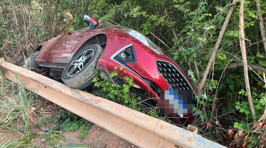 Carro fica suspenso após acidente em barreira metálica na zona Sul de Teresina